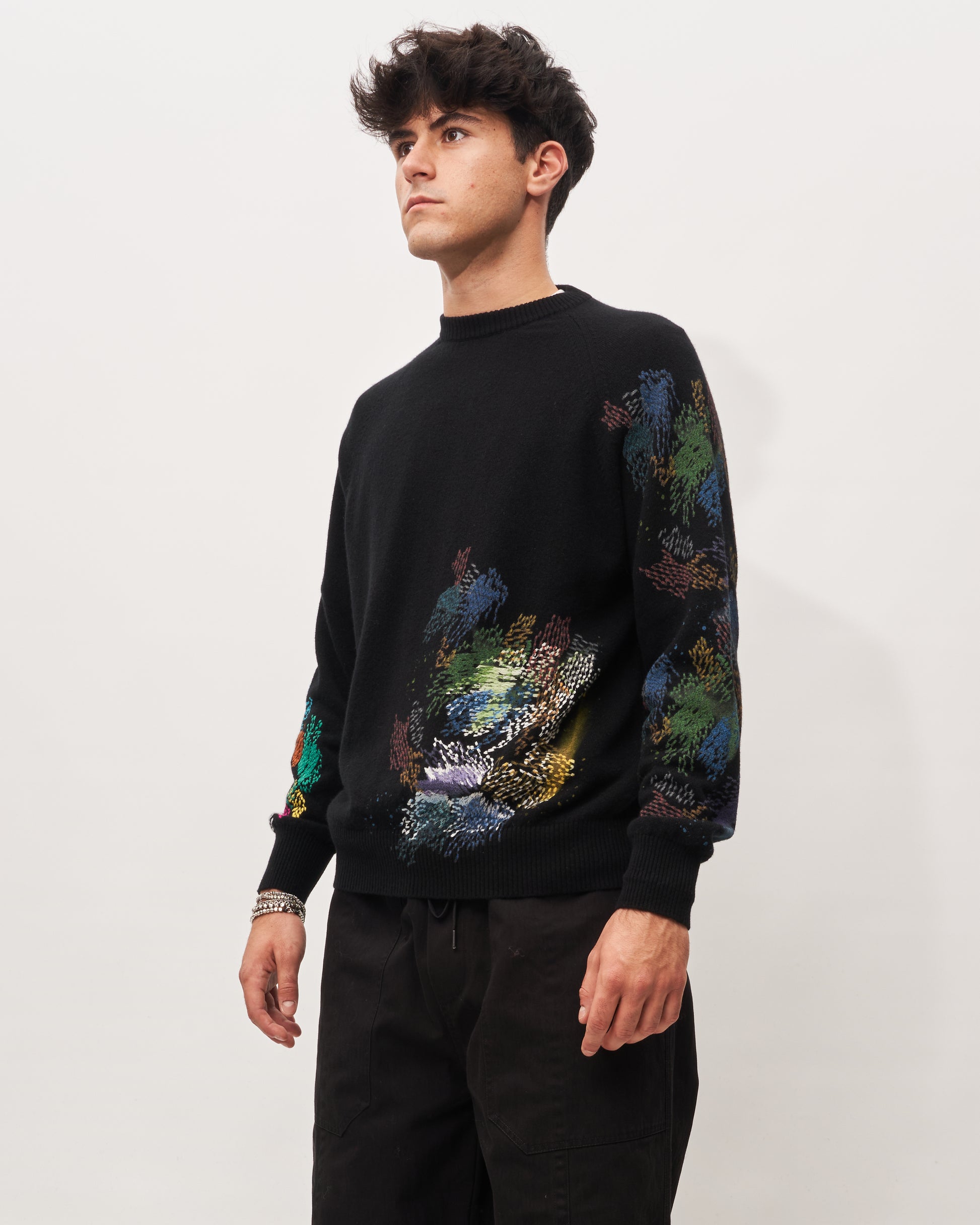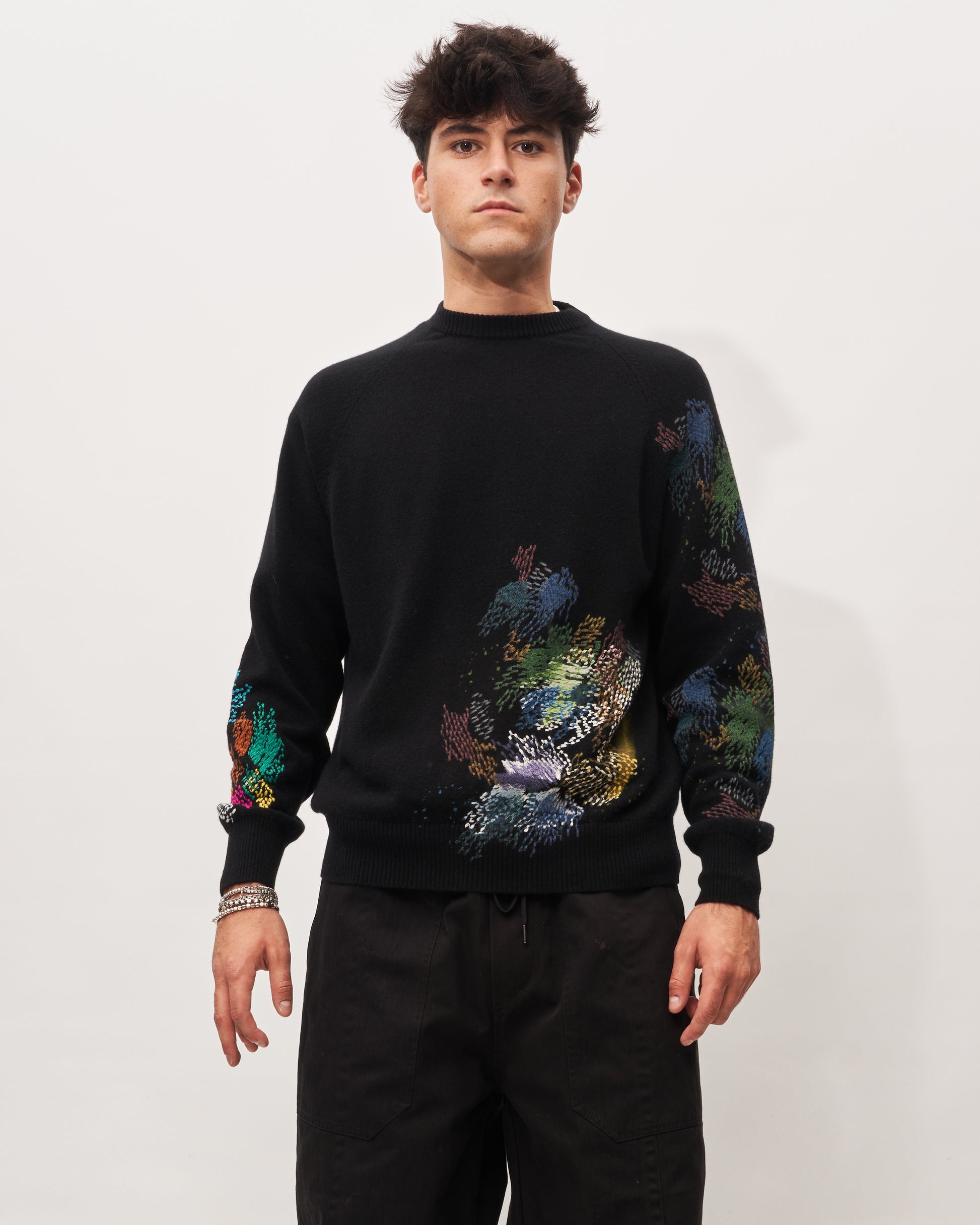 Product Title: Avant Toi maglia nera con ricamo e dipinto