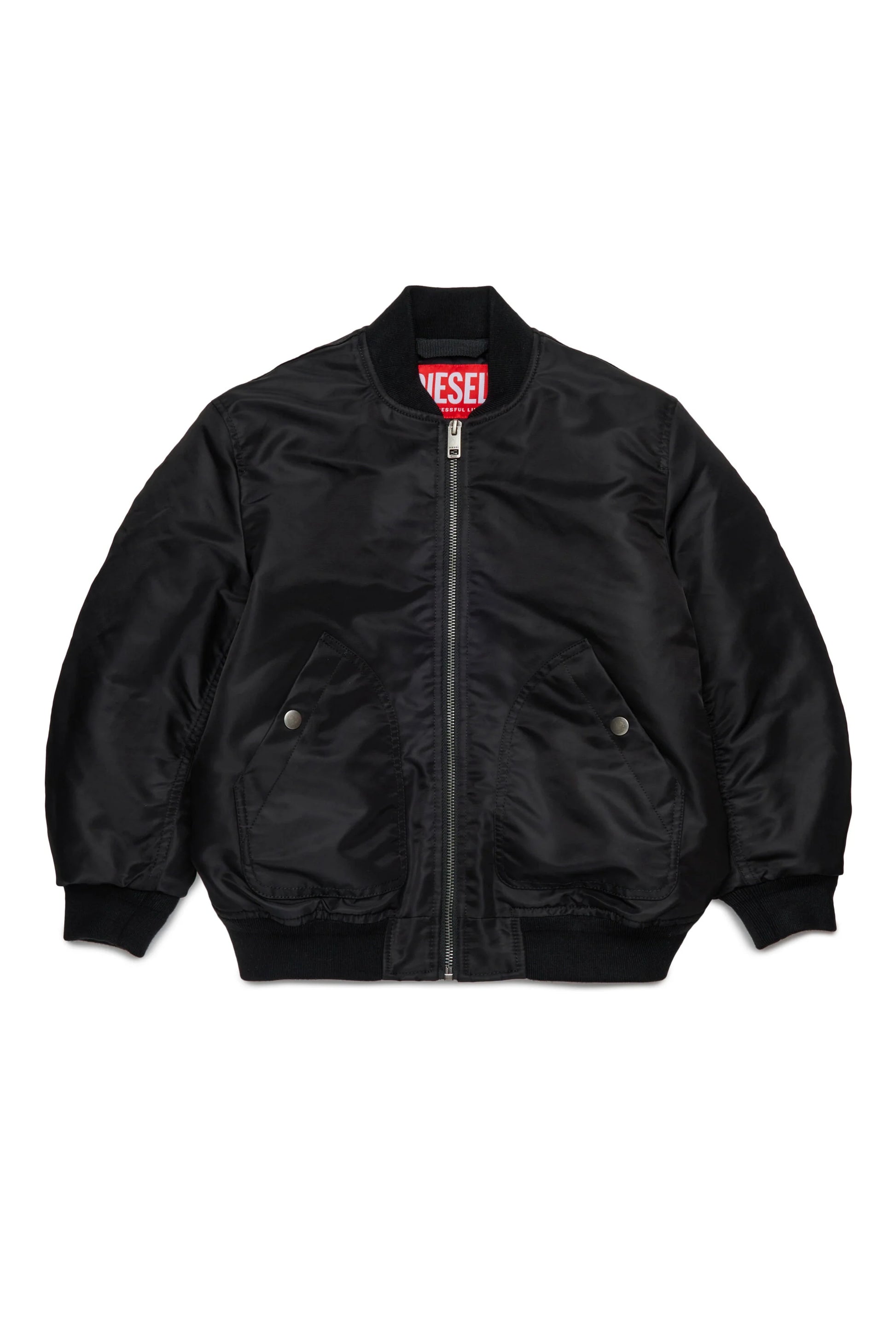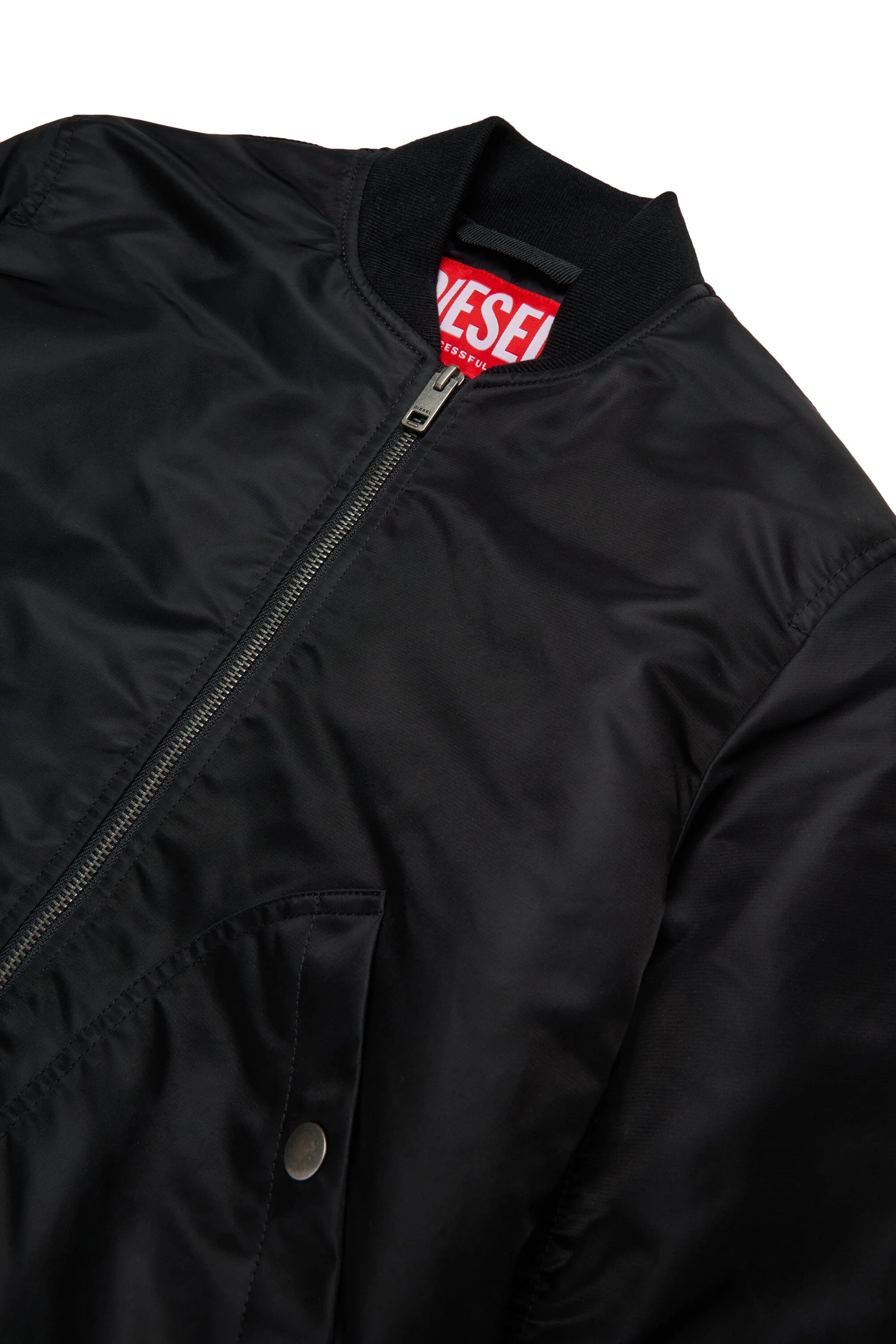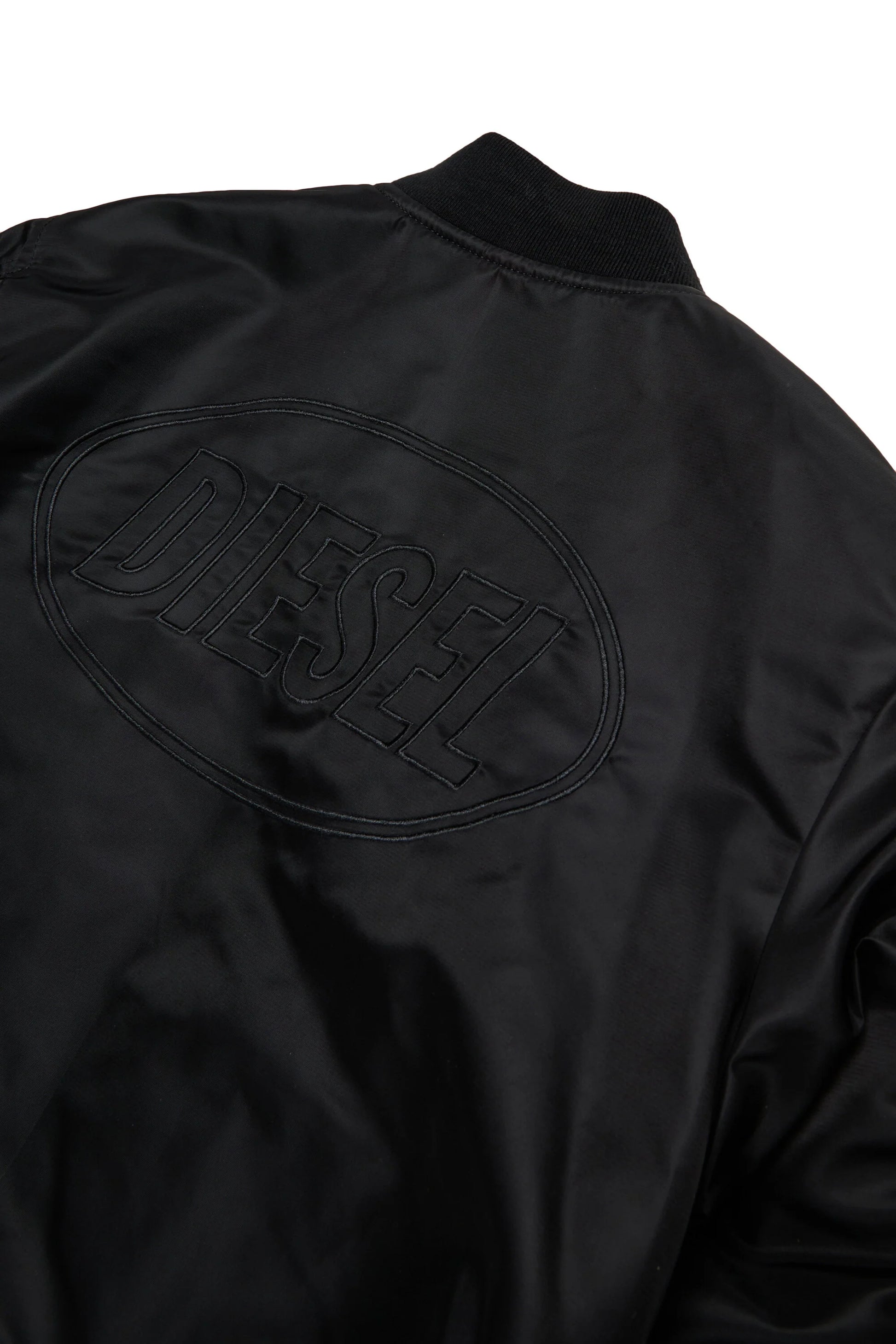 Giacca bomber in gabardina perfetta per le mezze stagioni. La ripresa lungo le maniche aggiunge movimento alla silhouette, mentre il maxi logo Oval Diesel ricamato sul retro dona stile e riconoscibilità al capo.