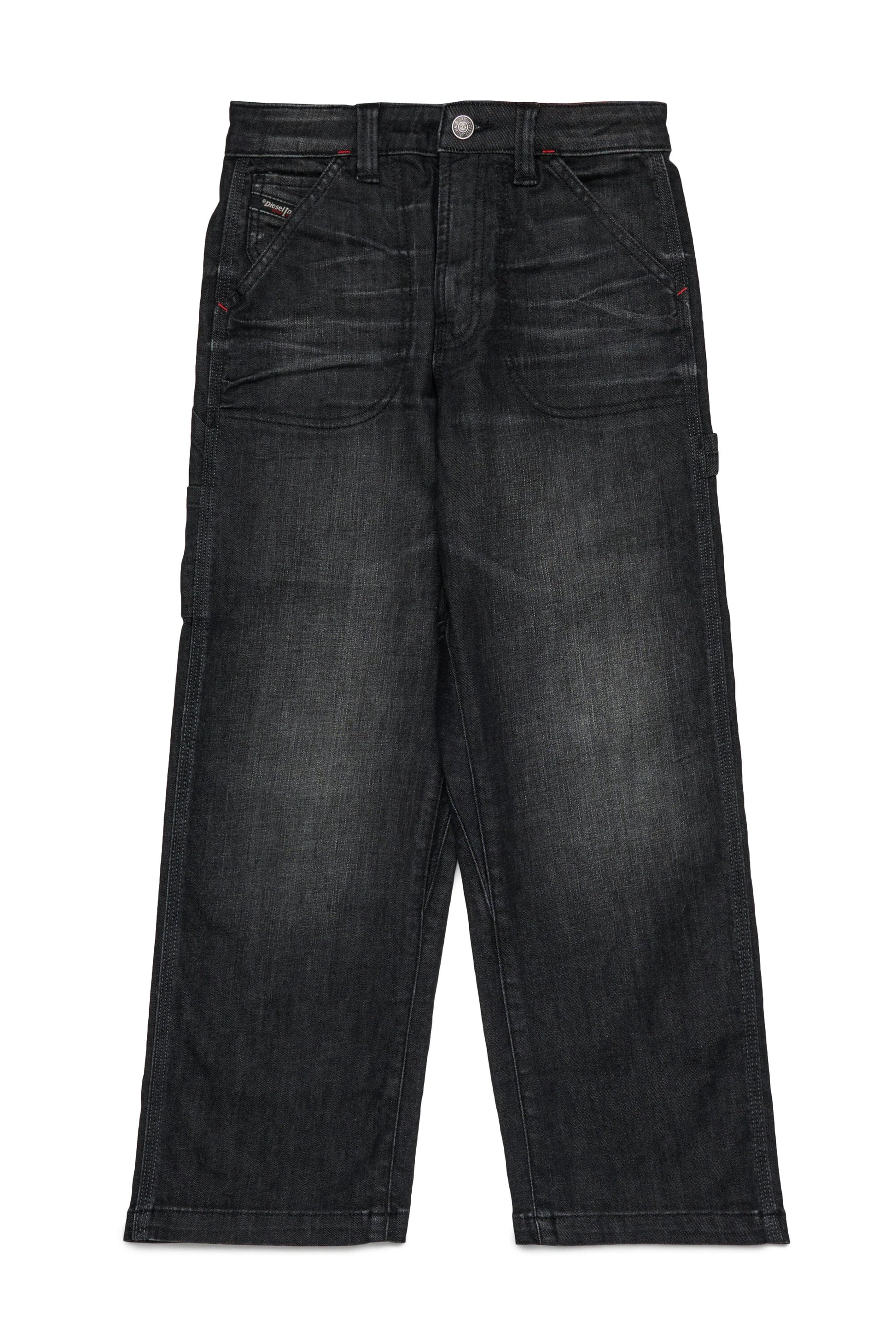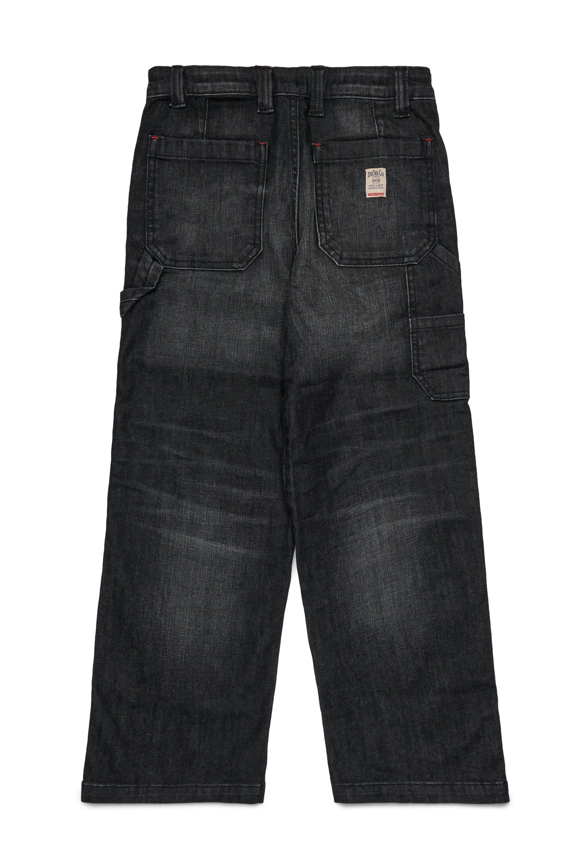 Jeans D-Bart relaxed fit in denim nero effetto vissuto con abrasioni dall'attitude utility/work. Un modello dalla silhouette oversize comoda dalla vita alle caviglie, morbido sulla gamba.