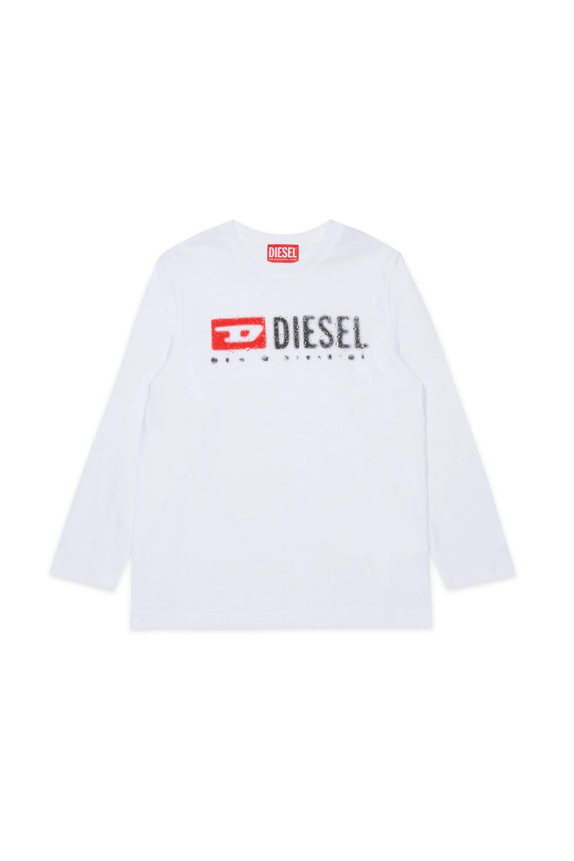 T-shirt a manica lunga in morbido jersey di cotone. Il logo Diesel Denim Division, arricchito da un effetto water splashed, dona un look dinamico e moderno.