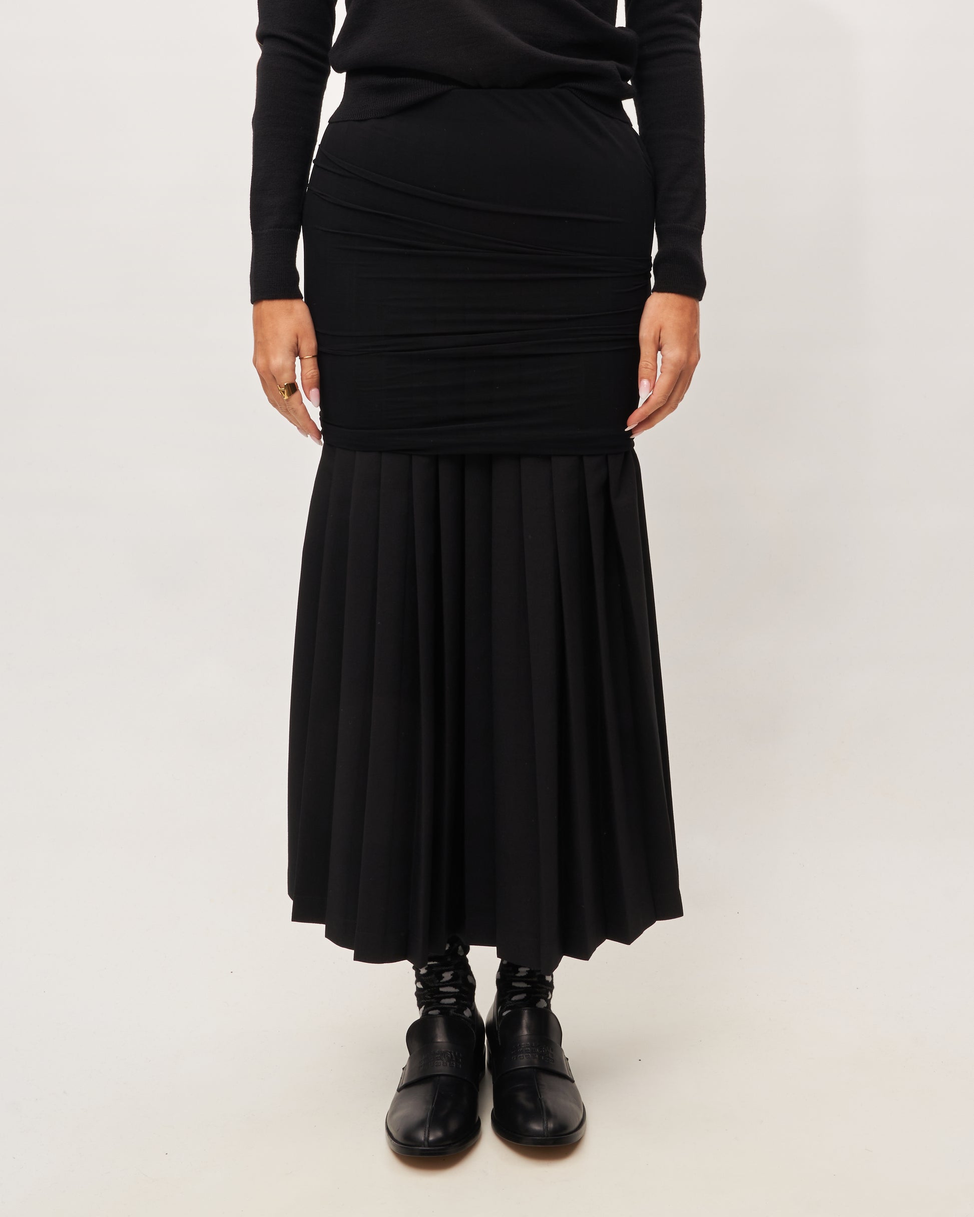 MM6 Margiela gonna nera a pieghe doppiata dal tulle